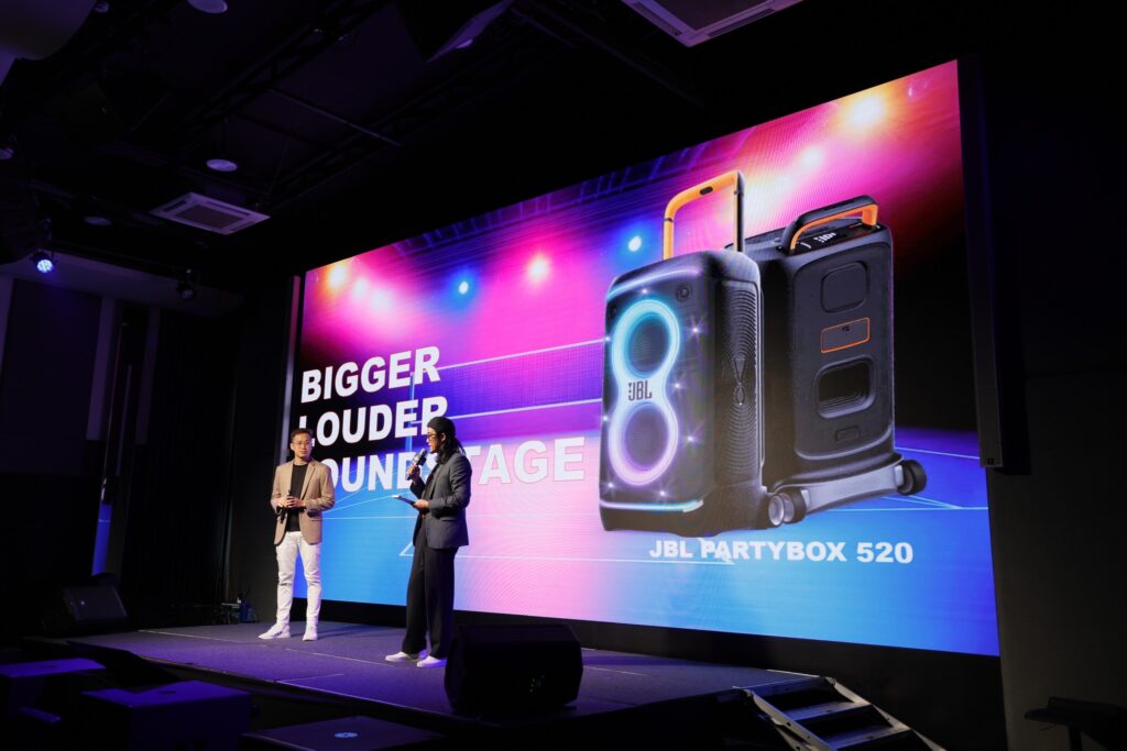 JBL PartyBox 520, PartyBox 720, PartyBox Encore 2 และ PartyBox Encore 2 Essentialมาพร้อมพลังเสียงอันทรงพลังด้วยเทคโนโลยี JBL Original Pro Sound และไฟเอฟเฟกต์ Dynamic Light Show ที่ซิงค์จังหวะกับเสียงเพลง เพิ่มสีสันให้ทุกปาร์ตี้ รองรับ Bluetooth 5.3 และการเชื่อมต่อไมค์สำหรับคาราโอเกะ