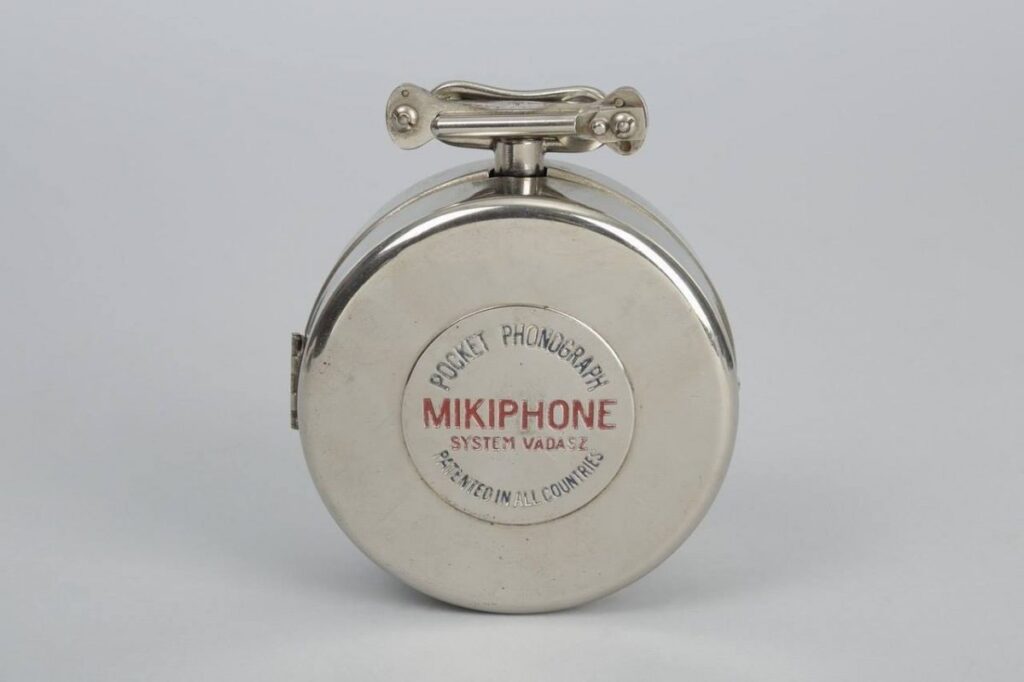 เอ๊ะ เอ๊ะ ล็อคเก็ตรึเปล่านะ! …ไม่ใช่นะครับ แต่สิ่งประดิษฐ์นี้ได้ชื่อเป็นอุปกรณ์เครื่องพกพาชิ้นแรกสุดของโลกด้านเครื่องเสียงกันเลยทีเดียวเชียวละ …จากหลักฐานที่สืบค้นได้นั้น ระบุยืนยันได้ว่า เป็นผลงานสิ่งประดิษฐ์ของพี่น้องชาวฮังการี มีชื่อว่า Miklós และ Étienne Vadász ในฐานะของเครื่องเล่นแผ่นเสียงพกพาที่มีขนาดเล็กพอที่จะใส่ในกระเป๋าได้ เรียกขานว่า Mikiphone